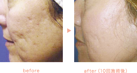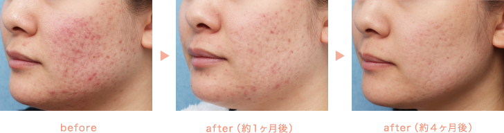 クレーター状のニキビ跡や瘢痕・色素沈着したニキビ跡、炎症しているニキビ、繰り返すニキビなど、ニキビ跡・ニキビの治療はもちろん、毛穴の開き・タイトニングなど肌質改善・美肌治療・エイジングケア治療にも適しています。