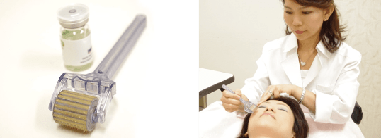 極細の針が無数についたローラーを肌の上で転がして、微細な穴を無数に開けて刺激し、同時にグロースファクター(成長因子)を肌に浸透させることで、コラーゲン産生と肌の再生を促します。ニキビ跡はもちろん、しわや毛穴の開きをも改善する、安全で画期的なエイジングケア法です。繰り返し施術を受ける事で、凹凸の無い、滑らかで弾力のある肌に生まれ変わります。