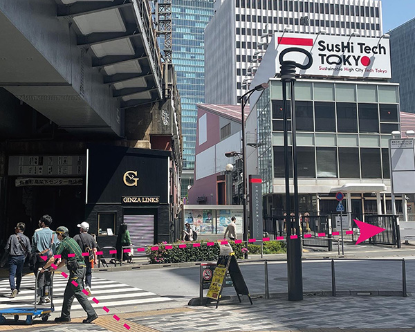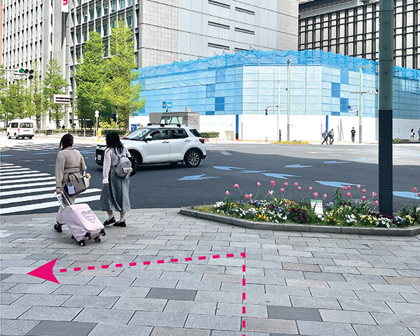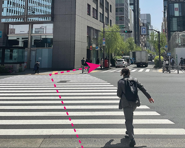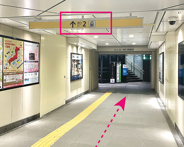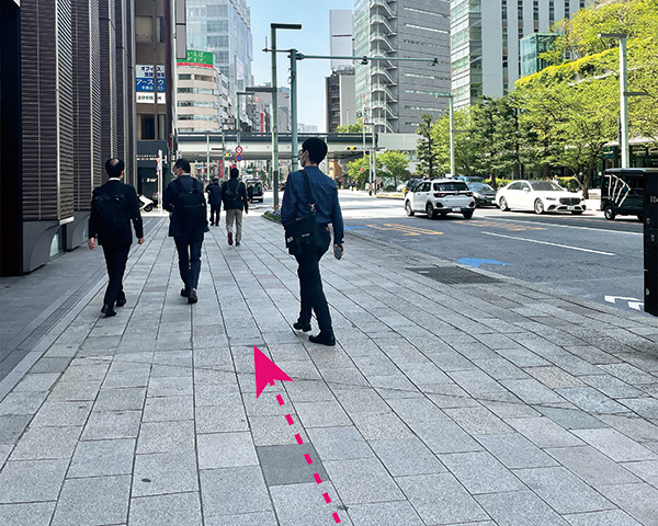 2. 地上に上がったら出口を背中側にして、まっすぐ道なりに進みます。