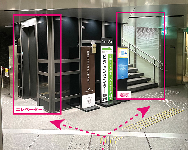 ※中央の入口からのエレベーターでは11階には上がれません。京橋寄りの専用エレベーターをご使用ください。