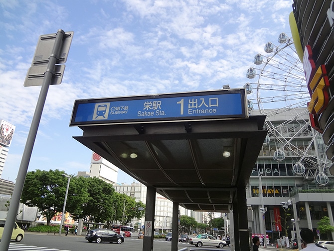 1. 地下鉄東山線『栄駅』下車、1番出口を出ます。