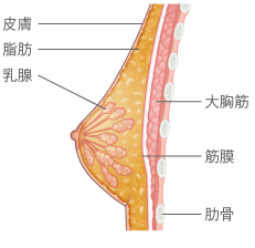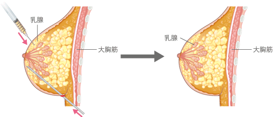 乳腺組織の下にあるレトロマンマリーファットティッシュスペースに、少量ずつ細かく満遍なく注入します。