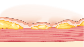 無理して皮下脂肪を取り過ぎてしまうと、皮膚と筋膜が直接癒着し、皮下脂肪が全くないゴツゴツした軟らかさのない感触の身体になってしまいます。