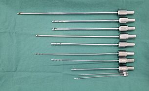 ・カニューレという特殊な管を挿入して脂肪を吸引。 施術は局所麻酔で行われ、カニューレ挿入のために切開する。 ・1回の施術でより多くの脂肪を取りたい場合に向いている。 |