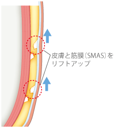 皮膚とSMAS、プラティスマを引き上げる。