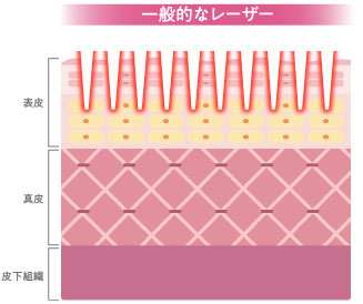 従来のレーザーと比較してより皮膚の深部までエネルギーを与えることができ、さらに狙いを定められるので、効率の良い美肌効果を得ながら痛みや肌ダメージも極力抑えることができます。
