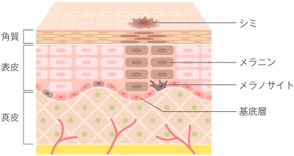 肝斑は治療しても再発を繰り返したり、治療の刺激でさらにひどくなってしまうこともありました。この肝斑の問題は、メラニン色素を作り出すメラノサイトが常に活性化されていることにあります。皮膚表面に浮かび上がったメラニンにレーザーを照射する通常のシミ治療では、効果が出ても一時的で、すぐに次々とメラニン色素が作られてしまうのです。