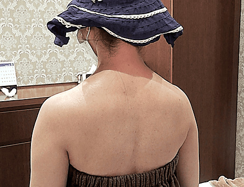 術後は僧帽筋の盛り上がっている部分が萎縮して、いかつかった肩がすっきりし、なだらかな女性らしい肩になりました。