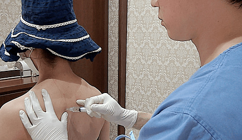 反対側も同じように注射します。