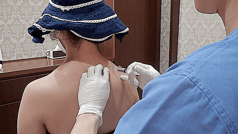事前に注射する部位に麻酔クリームを塗っており、極細の注射針で注射するので、痛みはそれほど強くありません。