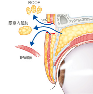まぶたの余分な皮膚を切除すると同時に、余分な眼窩内脂肪やROOFを切除することができます。