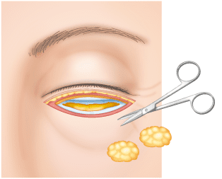 目の下の脂肪が余分に余っていて、たるみの原因になっている場合はその分の脂肪を除去します。
