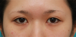 術後は、二重のラインが蒙古襞のやや上を乗り越えるようにデザインしたため、完全な末広型の二重にはならず、末広型と平行型の中間のような二重になりました。