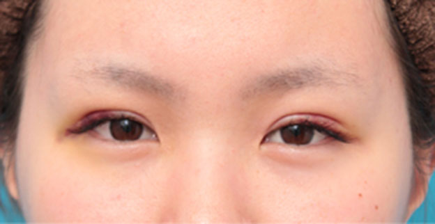 もし、この患者様に平行型二重やもっと幅の広い二重を作った場合、厚ぼったい二重になったり、二重のラインの下の皮膚がぷっくり膨らんで不自然になったり、目を閉じたときや伏し目になったときの傷跡が食い込んで不自然になったりします。