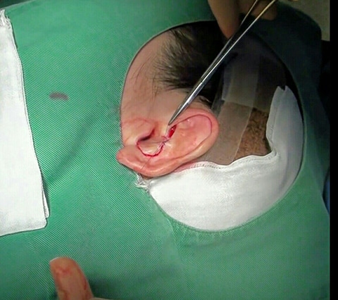 傷が目立たなくなるように、なるべく耳介の輪郭に沿ったデザインにします。