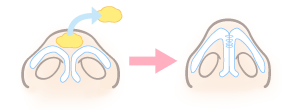 ②左右の大鼻翼軟骨の間の脂肪や軟部組織を切除し、軟骨同士を縫い合わせる術式