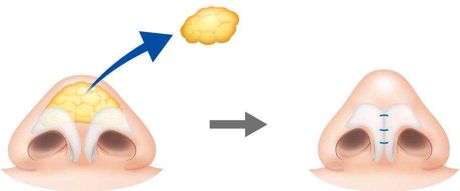 ハンプ切除横から見た鼻のラインを自然で滑らかに整え、横顔の美人度アップ。 ![]() |